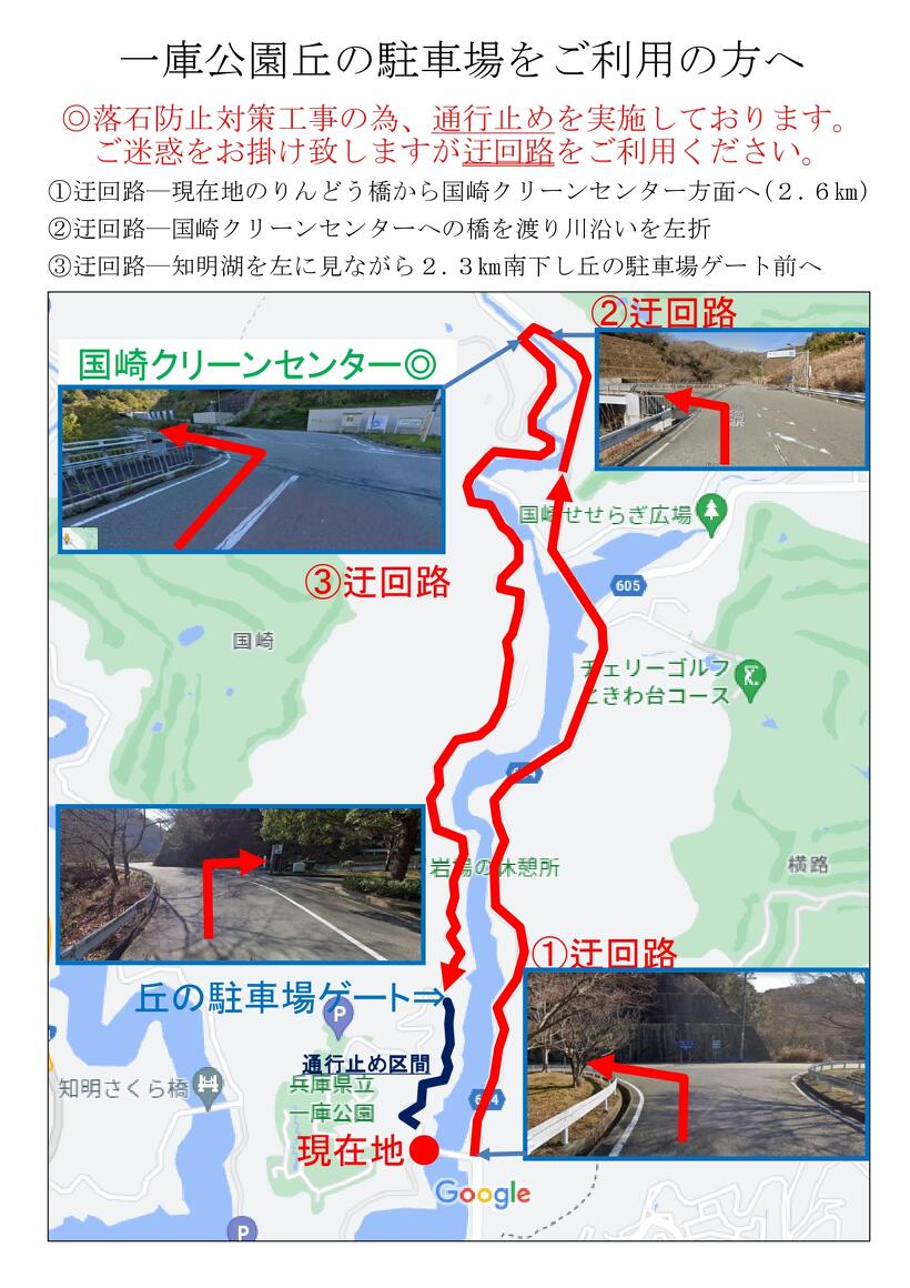 丘の駐車場をご利用のお客様は、公園北部にあります国崎クリーンセンターまで